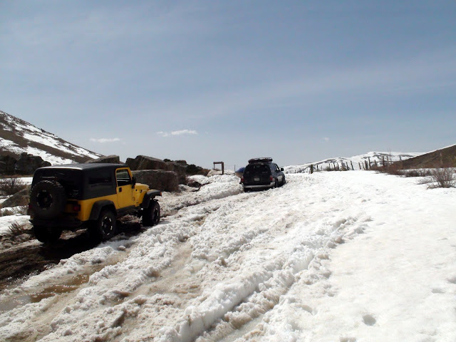 The pass out of the park, which heads to Oakley, ID, was still covered in snow and had not been successfully crossed yet this year. Patrick and I accepted this challenge and the four of us headed right for the pass.